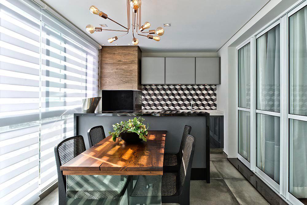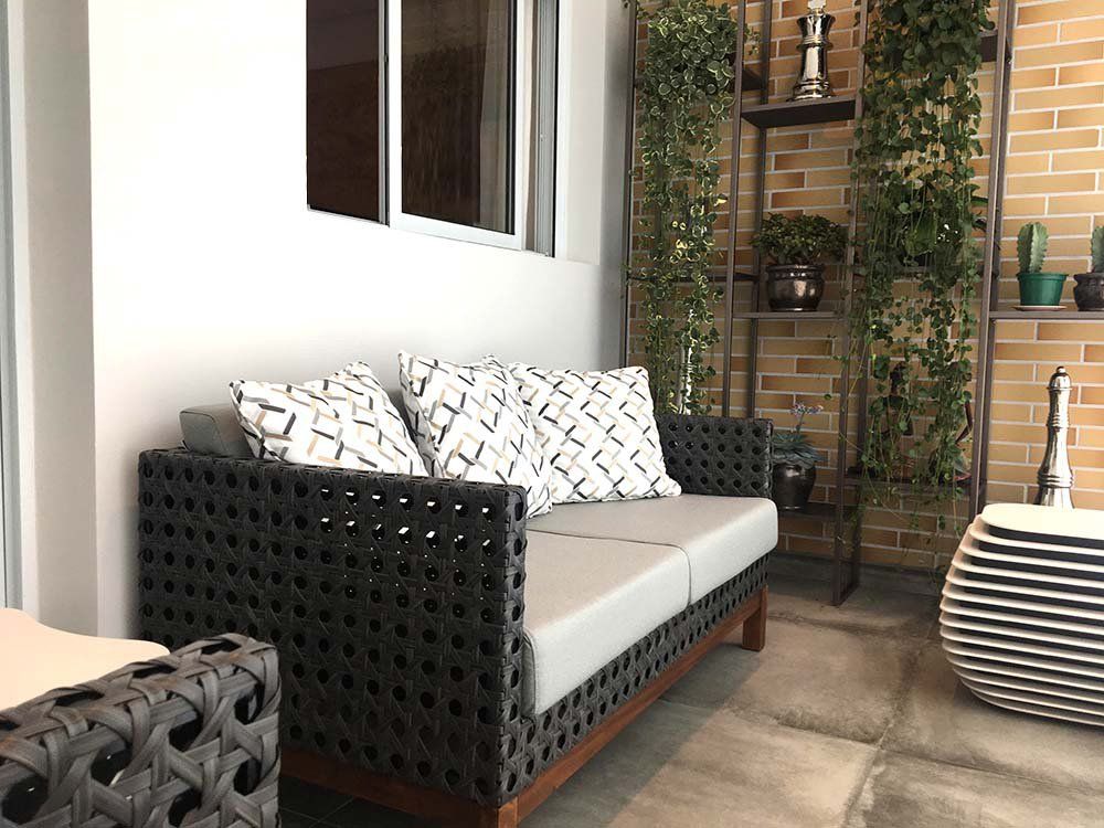 O conceito clássico permaneceu em todos os outros ambientes do apartamento, não apenas no mobiliário e sim em cada detalhe decorativo. Exceto a Varanda Gourmet que ficou mais arrojada e contemporânea, utilizando materiais rústicos contrapondo com peças assinadas pelo designer Jader Almeida, poltronas e sofá da coleção Straus da Saccaro.